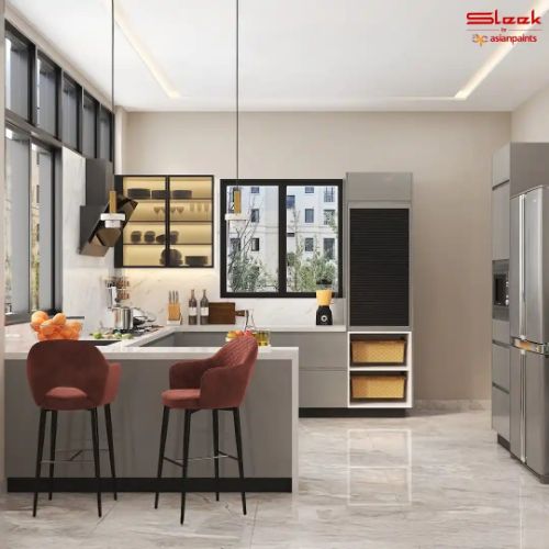 Welcome to Dooars Decor & Lifestyle, your premier destination for luxury modular kitchens, cabinets, wardrobes and fitted furniture in Siliguri & Gangtok. With over 30 years of expertise in kitchen remodelling, Sleek by Asian Paints brings unparalleled quality and innovation. As an authorised Sleek showroom, all our modular kitchens come with top-quality materials and a 10-year service warranty. Our kitchen showroom showcases many modern designs in L-shaped, U-shaped, Parallel, Straight, Island, and more layouts. Our dedicated in-house designers will assist you in tailoring your kitchen to match your style and space requirements.Visit our modular kitchen showroom near you today to explore our exquisite collection of kitchen interior designs.